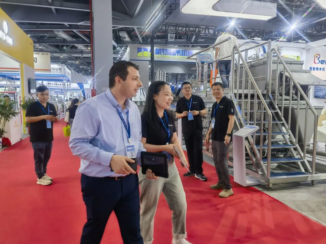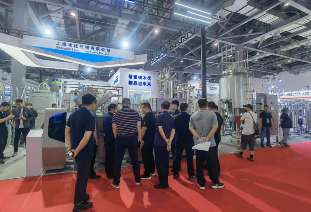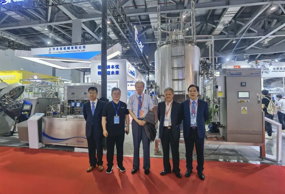 中国乳制品工业协会名誉理事长宋昆冈、理事长吴秋林、副理事长刘超、副秘书长黄海丰等领导一行莅临本优展位。重点参观本优展出的奶酪设备、直喷式杀菌机、真空混料设备等,并给出了高度评价。